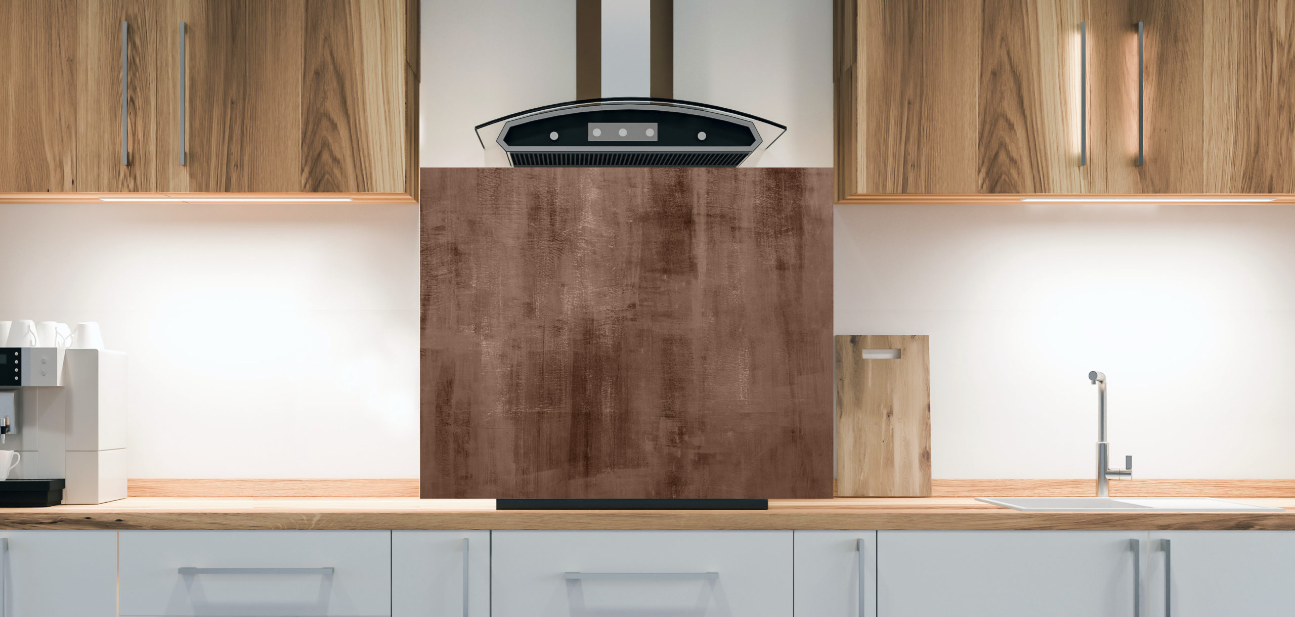 Misez sur un classique de la décoration avec cette crédence fond de hotte effet béton lissé couleur mocha, intemporelle, qui apportera de la sobriété et de l’élégance à votre cuisine.