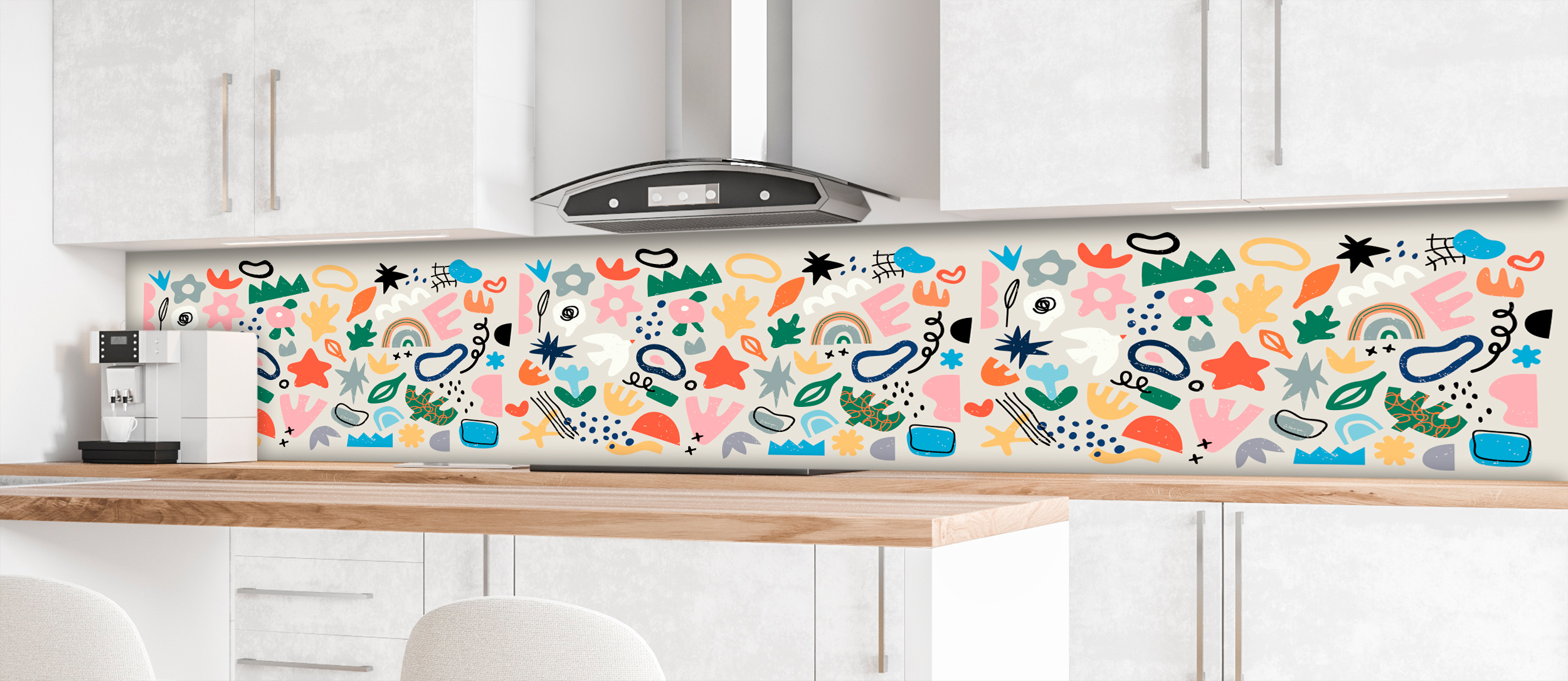 Mettez de l’art contemporain dans votre cuisine, avec cette crédence panoramique aux motifs largement inspirés du style de Matisse, composés de multiples formes au mélange de couleurs tendance. Originalité garantie dans votre pièce !