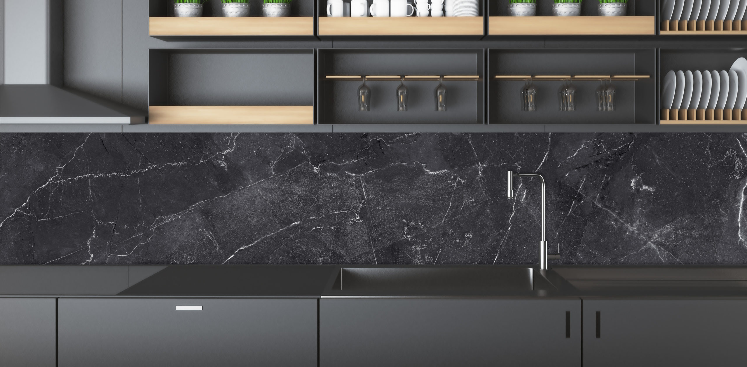 Misez sur un classique de la décoration avec cette crédence panoramique effet marbre gris, intemporelle, qui apportera de la sobriété et de l’élégance à votre cuisine.