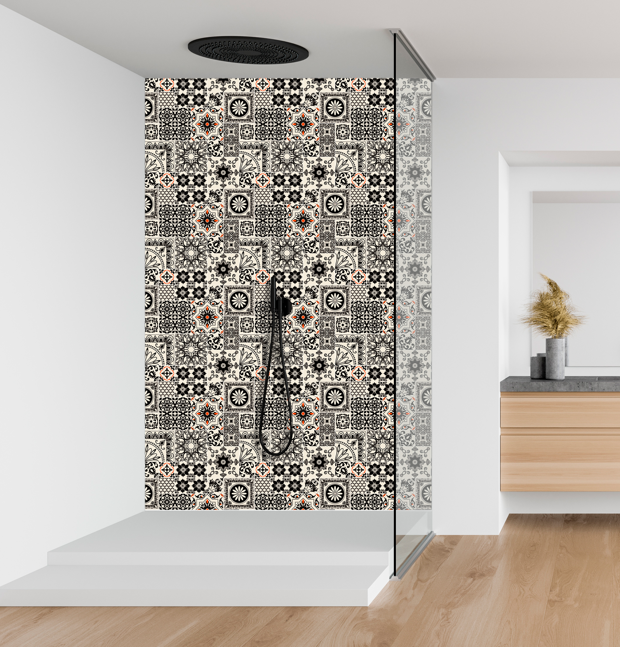 Envie d’une ambiance rétro mais originale dans votre salle de bain style carreaux de ciment ? Optez pour cette crédence panneau de douche de patchwork de carreaux, en version tricolore : une valeur sure.