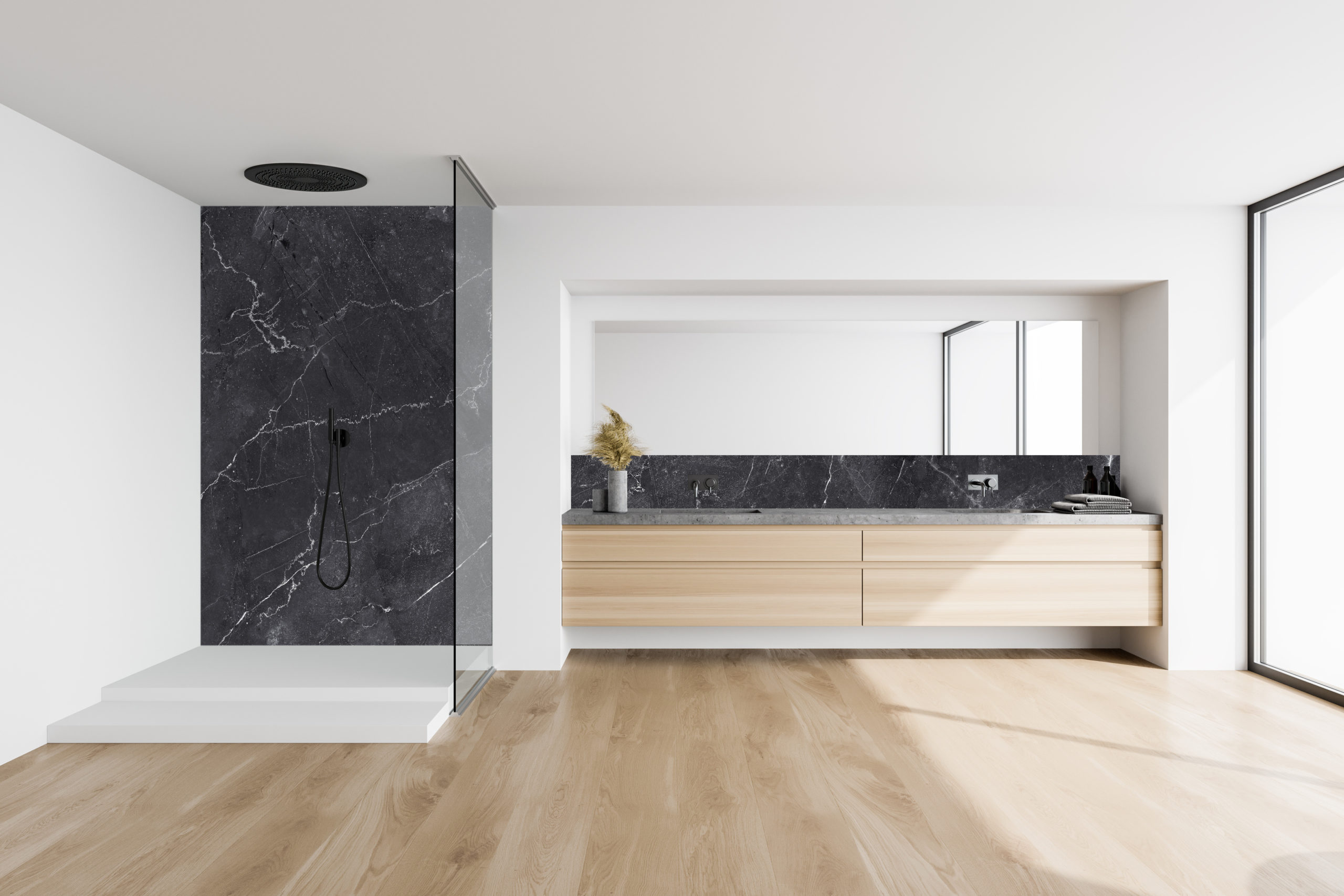 Misez sur un classique de la décoration avec cette crédence panneau de douche effet marbre gris, intemporelle, qui apportera de la sobriété et de l’élégance à votre salle de bain.