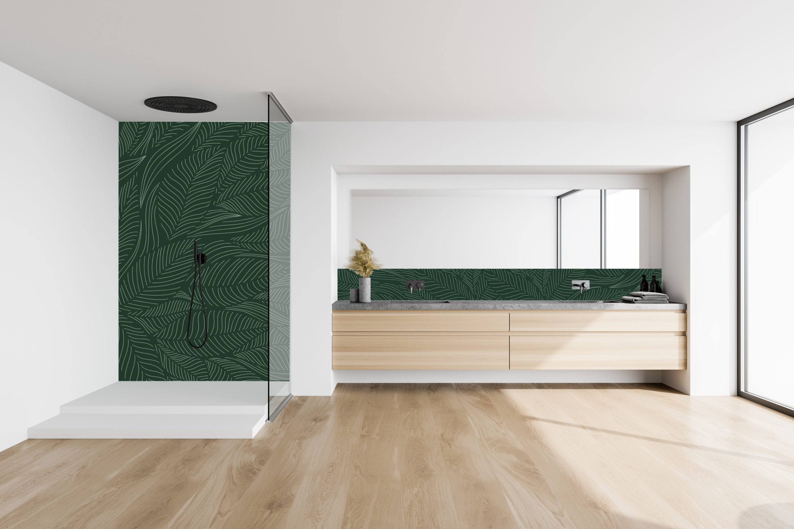 Envie d’apporter une touche végétale et une petite note tropicale à votre salle de bain en tout en sobriété ? Cette crédence panneau de douche et ses couleurs douces vous séduira sans aucun doute.