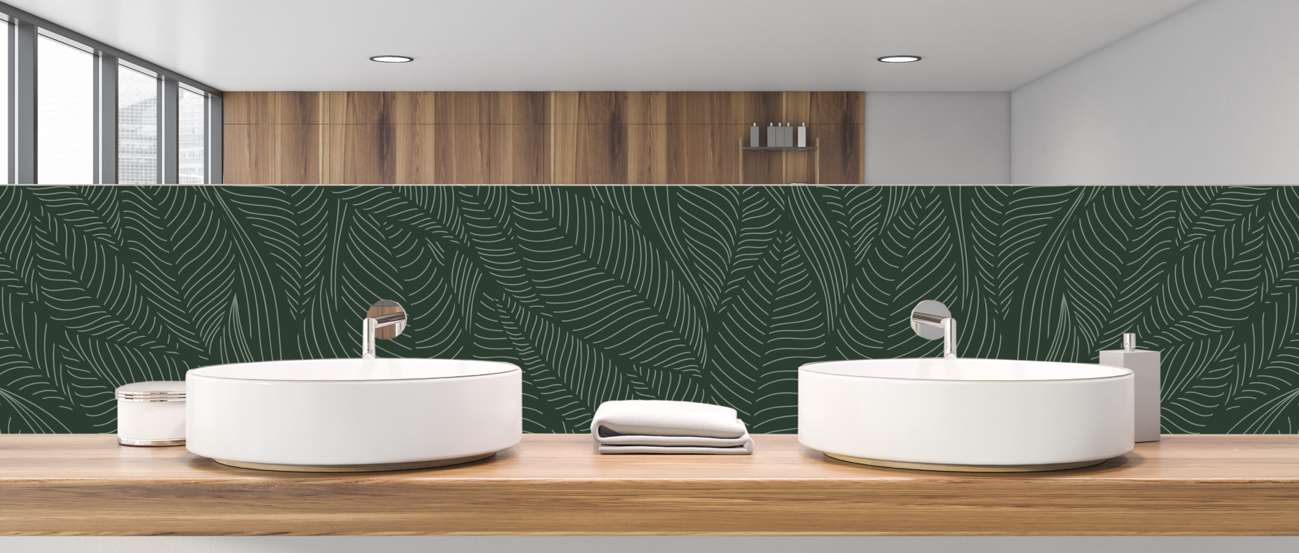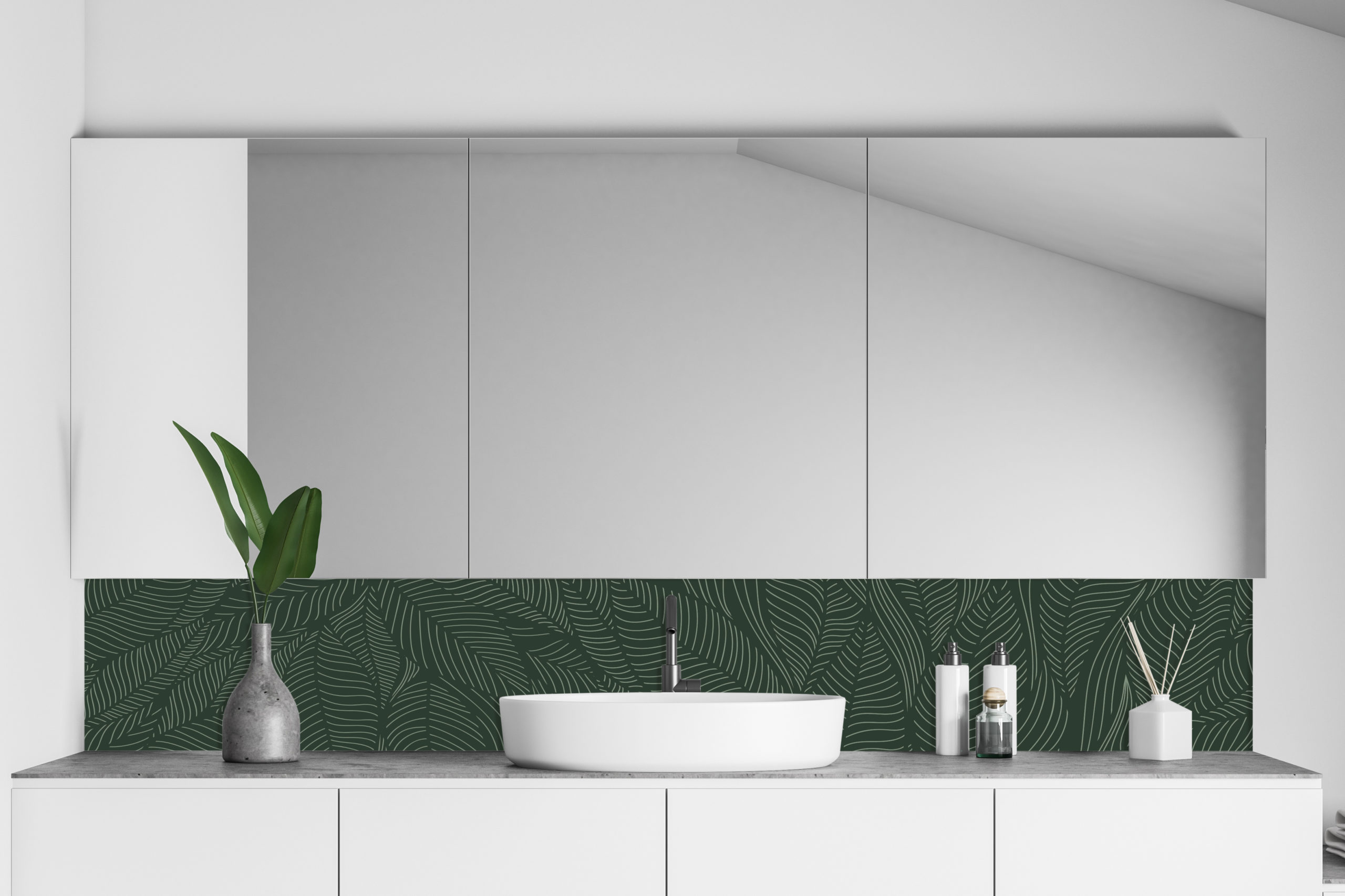 Envie d’apporter une touche végétale et une petite note tropicale à votre salle de bain en tout en sobriété ? Cette crédence panneau de vasque et ses couleurs douces vous séduira sans aucun doute.