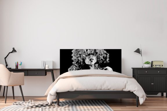 Mettez une toile contemporaine dans la chambre de votre ado ! Modernité garantie avec cette tête de lit artistique style peinture à l’huile, en version noir et blanc, qui décorera sa chambre à merveille.