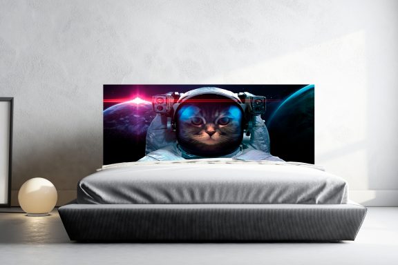 Ambiance cosmique et insolite pour cette tête de lit chat cosmonaute. Originalité garantie dans la chambre de votre ado !